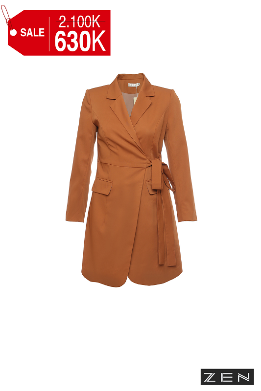 19/A034/L/02/ÁO KHOÁC, CỔ VEST, DT, ĐAI EO, NÂU