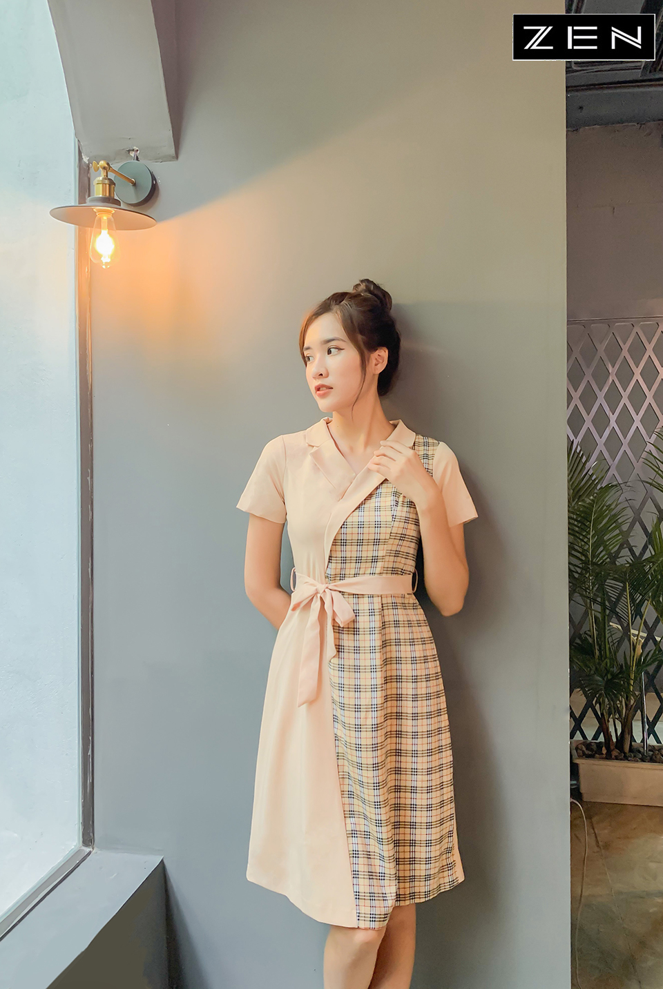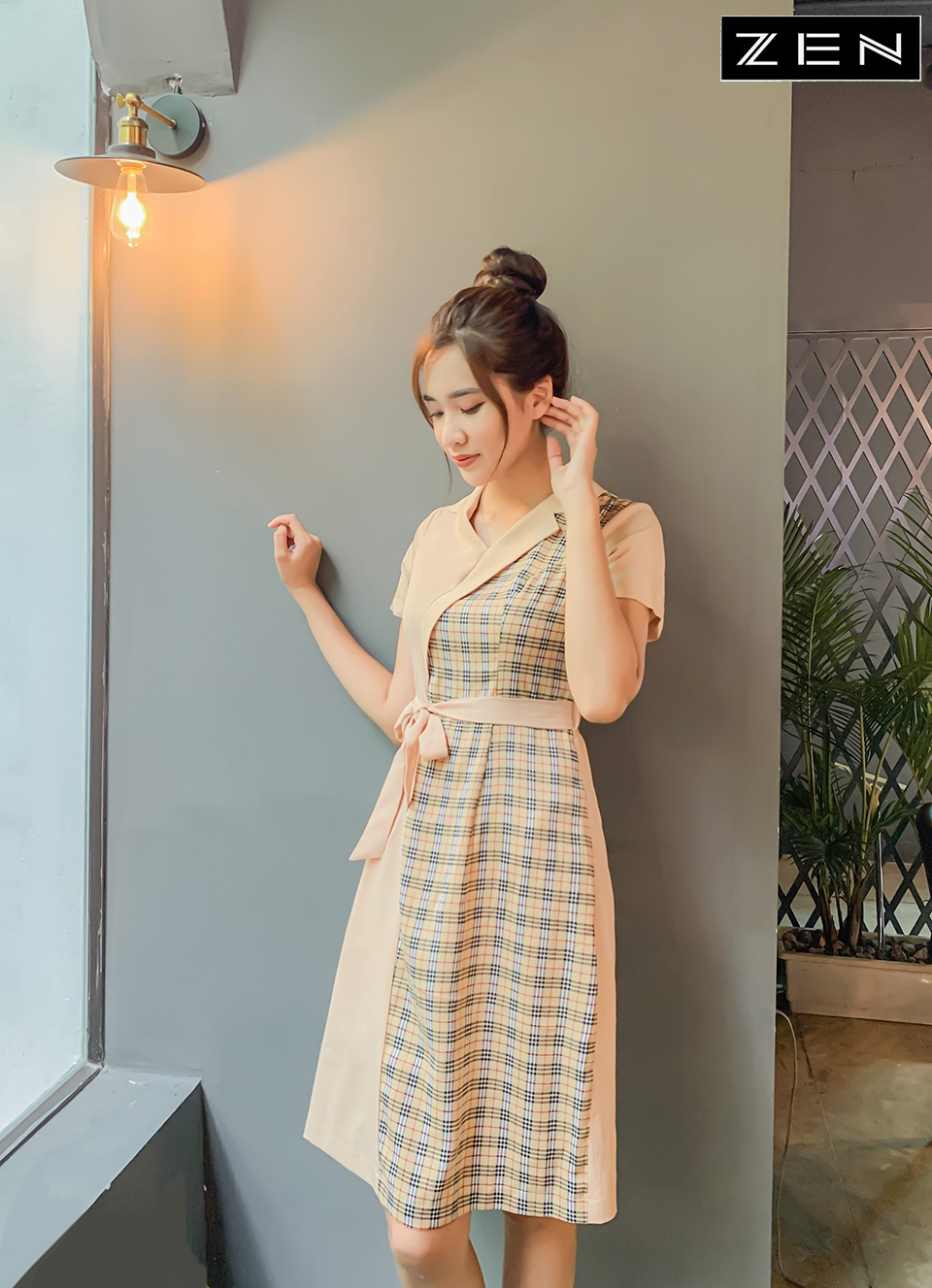 20/V073/02 VÁY XÒE A. CỔ VEST, PHỐI TRƯỚC, BE