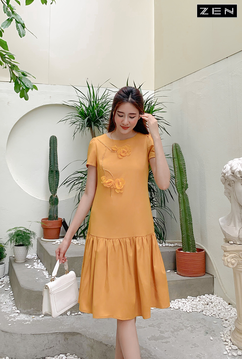 21/V040/02 VÁY SUÔNG ,CỘC TAY,ĐÍNH HOA,VÀNG