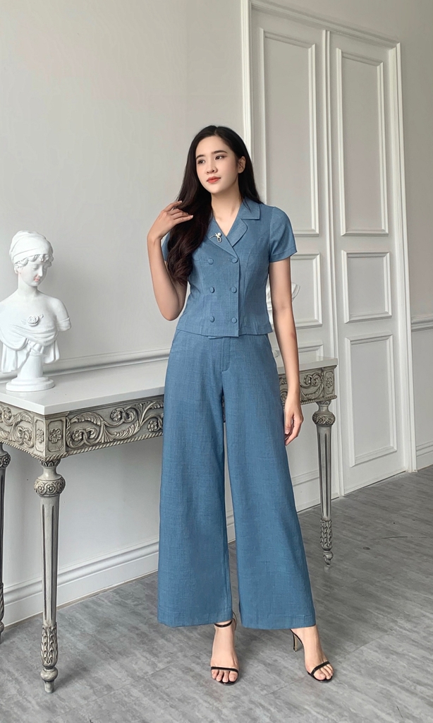 23/B004/M/01/BỘ ÁO VEST CT, 6 CÚC + QUẦN SUÔNG, XANH