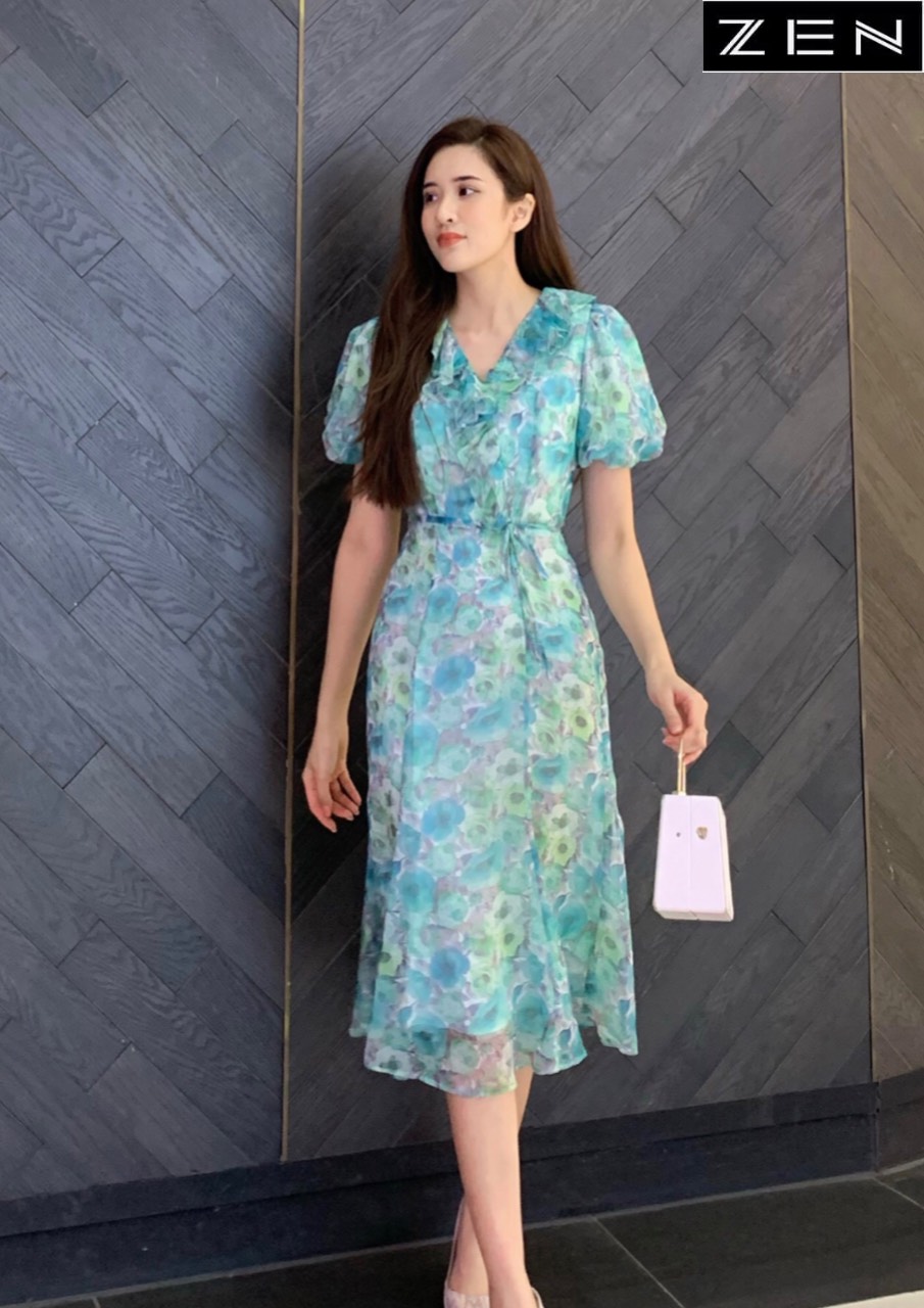 23/V002/XL/02/VÁY VOAN, BÈO CỔ, HOA XANH