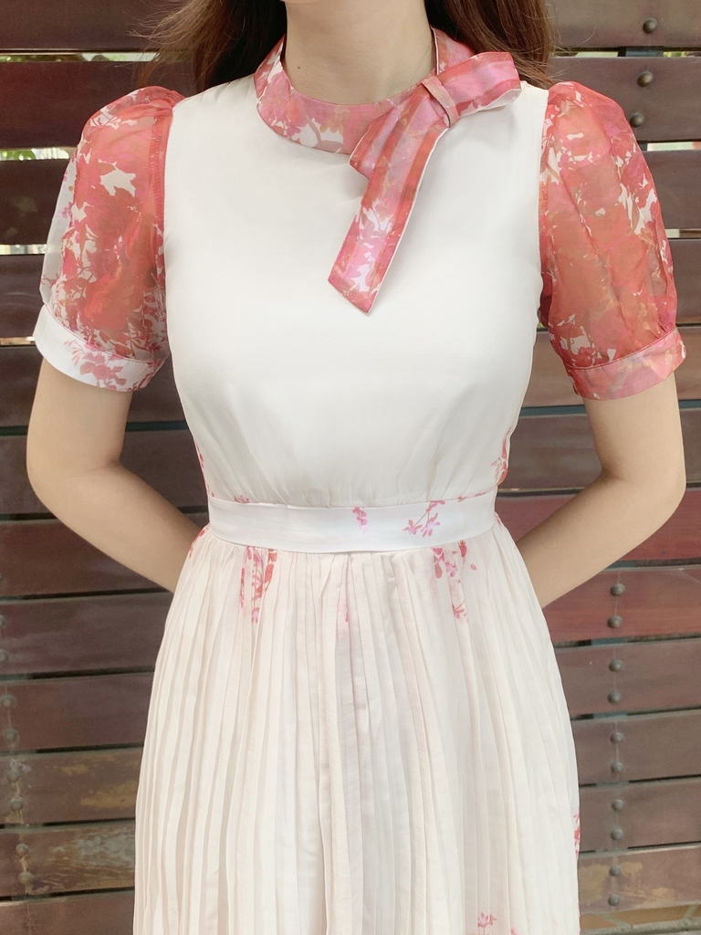 23/V036/L/02/VÁY VOAN, CỔ 3F CÀI NƠ, CT, HOA ĐỎ