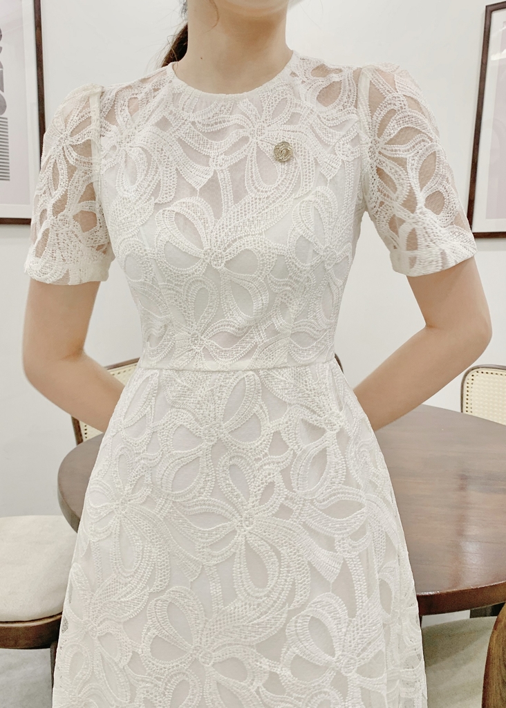 23/V047/M/01/VÁY XÒE, CỔ TRÒN, TL, REN TRẮNG