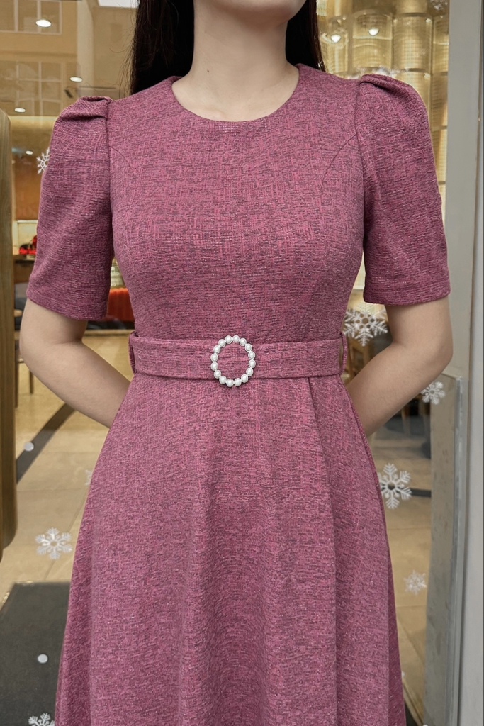 23/V058/M/03/VÁY XÒE, TL, ĐAI EO, HỒNG